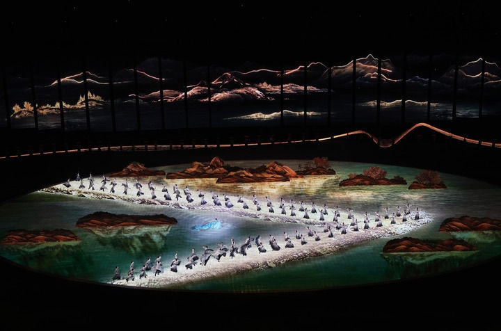 星光闪烁,90名舞蹈演员化身为“白鹭精灵”,挺立高雅身姿与繁星共舞,轻盈的步伐踏寻出“绿水青山就是金山银山”的生态画卷。