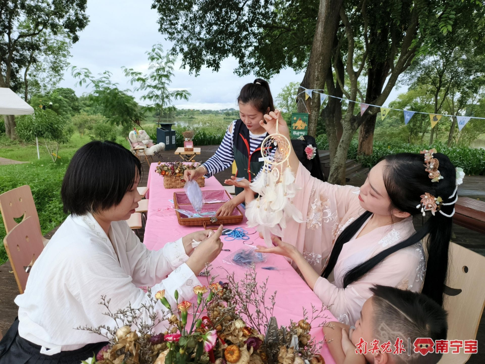 另一边, 一场传统的明制婚礼让游客通过仪式、服饰等了解汉婚文化。在南宁园博园中华城市展园内,多样化形式展现京剧、川剧、古典舞蹈等表演,体现不同的文化魅力。活动现场还配套了科普传统手工体验区、传统民俗体验区、非遗市集等。