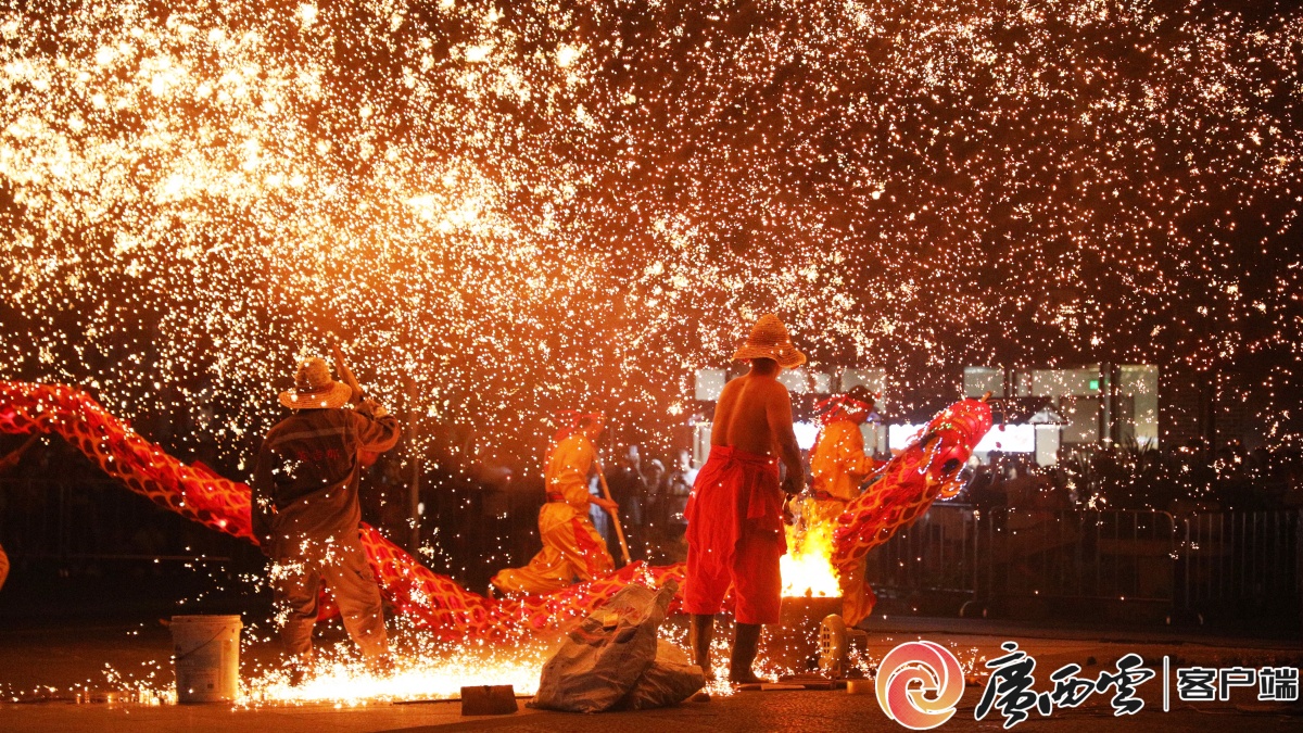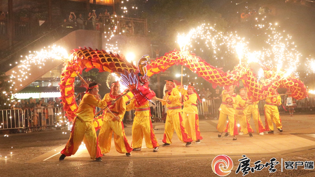 10月1日,桂林首届火龙节活动在融创国际旅游度假区举行,舞龙表演、打铁花非遗表演、火龙架子烟花等精彩节目轮番上演,吸引数万人前来观赏。记者 傅清龙 通讯员 黎伟 摄