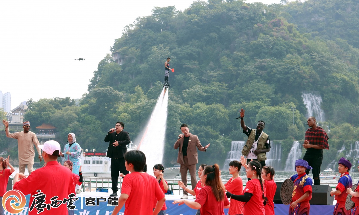 9月28日,在2023中国柳州国际水上狂欢节开幕式现场,水上飞人表演精彩纷呈。记者 谢永辉 摄