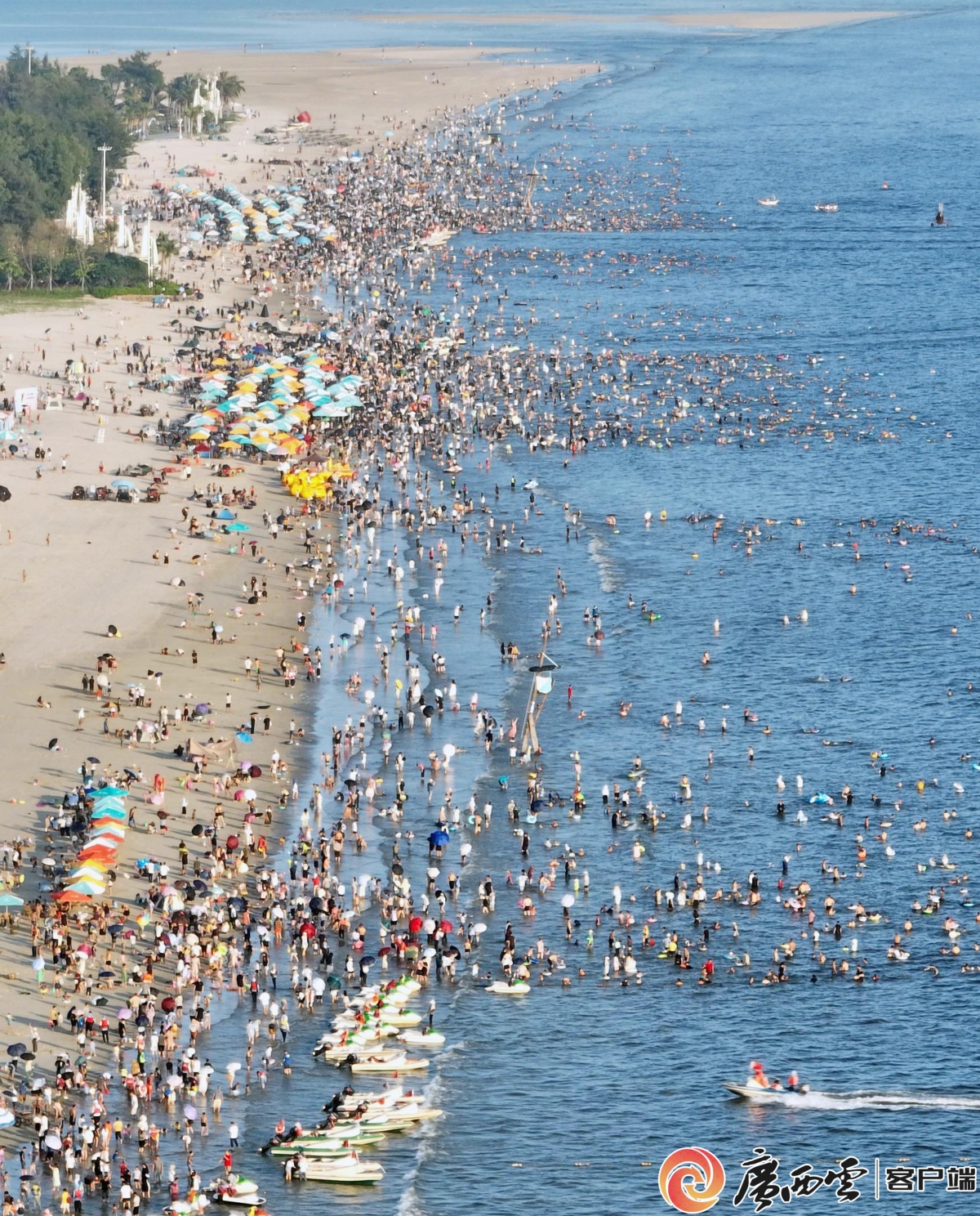 中秋、国庆期间,北海银滩国家旅游度假区迎来游客高峰,每天均有数万游客在十里银滩尽享滨海风情。李君光 摄