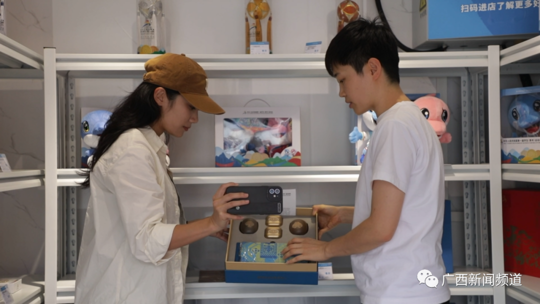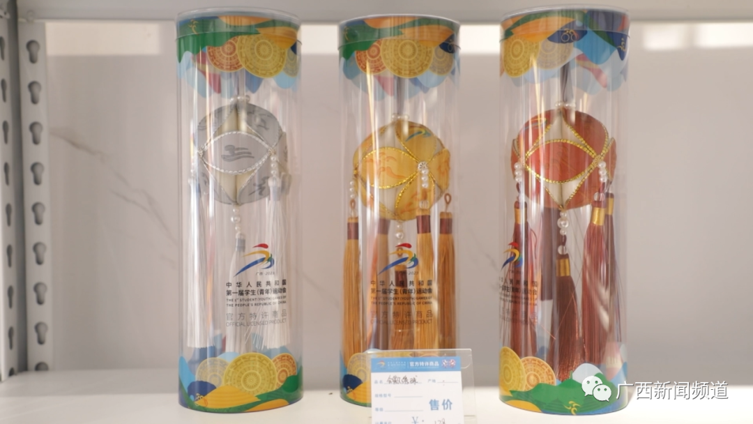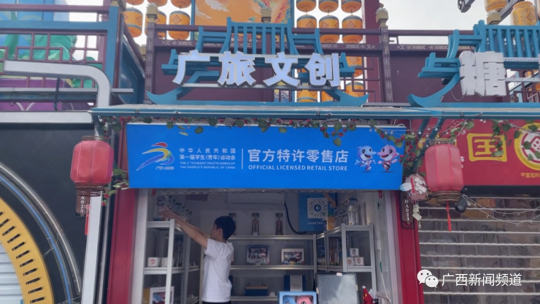 广西旅发中盛旅游发展有限公司运营部副经理 学青会特许商品负责人 展新蕾:我们把店设在这里,也是为了利用这条街的一个热度来进行宣传推广学青会的赛事,第二,也是希望我们所有来参赛的运动员,也可以来逛一下我们极具代表性的南宁之夜。我们还在各运动员下榻的酒店,广旅旗下的景区资源,以及我们在青运村都设有相关门店,目前推出的首批产品是十八款,第二批也将会陆续增加一些新品。