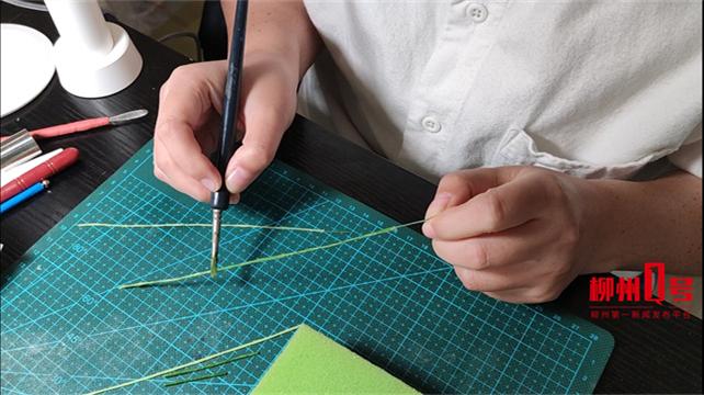 在一个直径为6厘米的不锈钢碗中,柳州螺蛳粉的经典主料和配菜应有尽有,红油还流出了碗,令人垂涎欲滴。请注意,这是手工摆件,不是真的螺蛳粉!“煮”这碗“螺蛳粉”的是“85后”柳州姑娘张妍。10月10日,记者走近张妍,看她如何巧手“煮”粉。