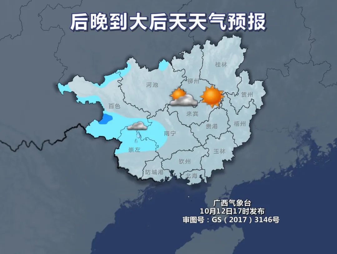 12日晚上到13日白天,百色、崇左两市多云到阴天有分散阵雨,我区其它地区多云。