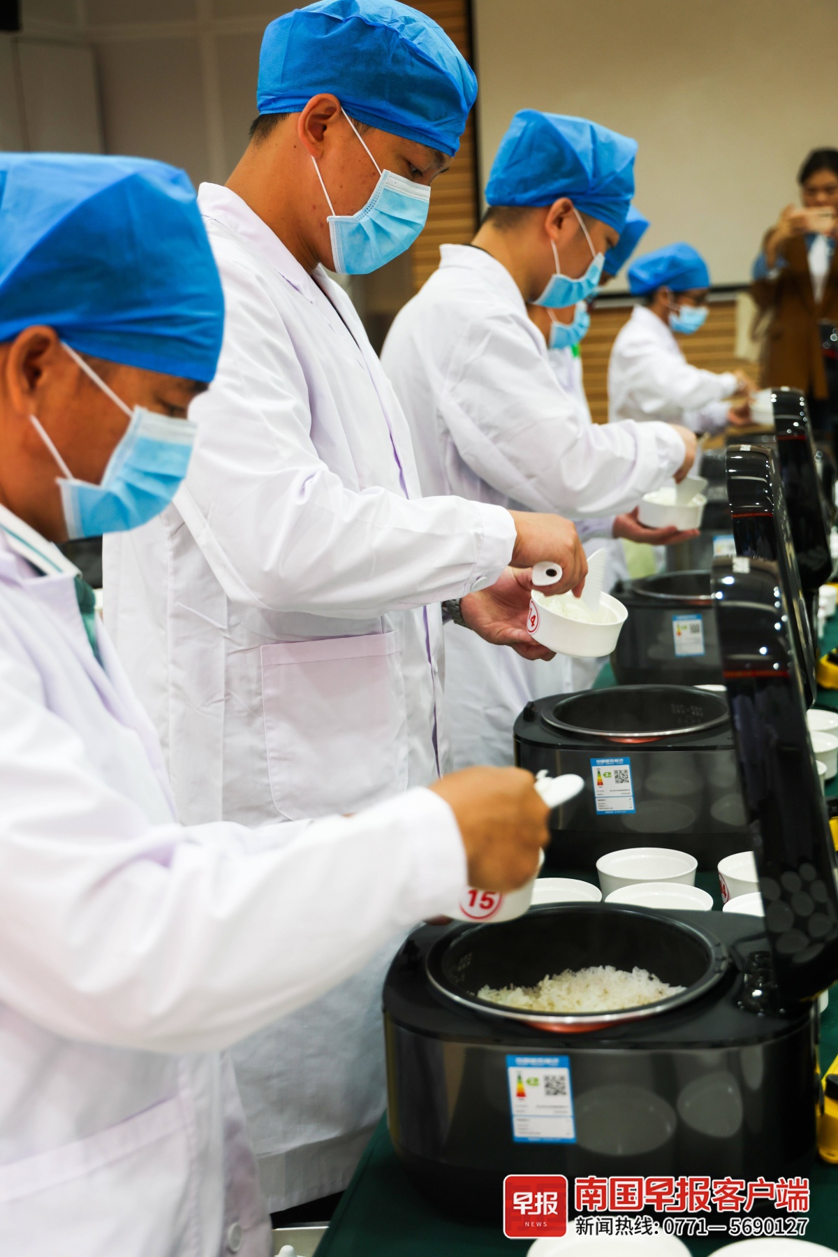 在鉴评现场,每位专家至少要对70多碗米饭进行品尝,从气味、外观(颜色、光泽、完整性)、适口性(包括粘性、弹性、全硬度)、滋味和冷饭质地等5个方面进行评价、打分。