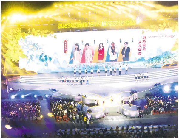 桂林(临桂)桂花文化旅游季开幕式上,30名“桂花仙子”化身为防艾宣传员、禁毒宣传员、文化旅游形象大使、反诈宣传员、消防宣传员、文明使者,带头进行公益宣传,向社会传播正能量。