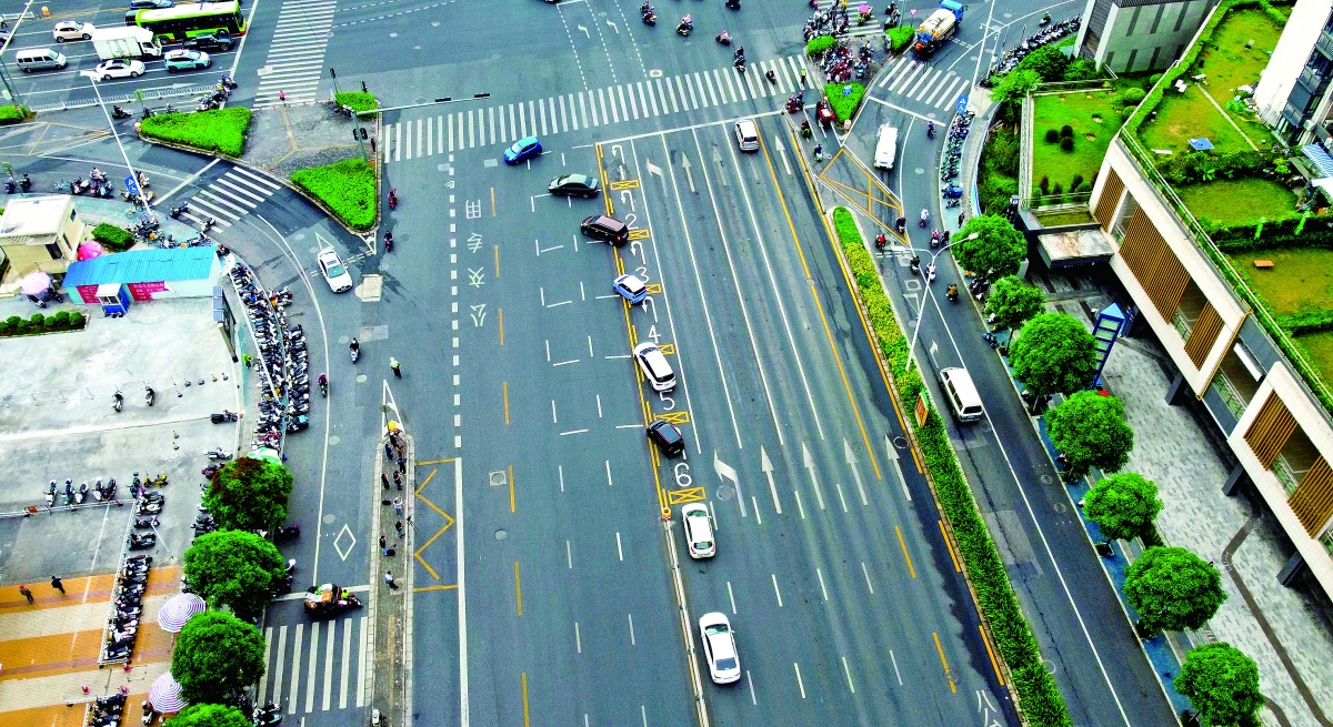 6辆车可同时掉头 南宁交警在星光大道亭洪路口启用“联动式掉头”