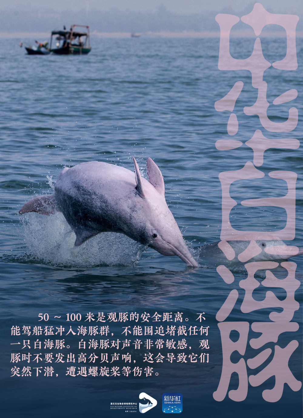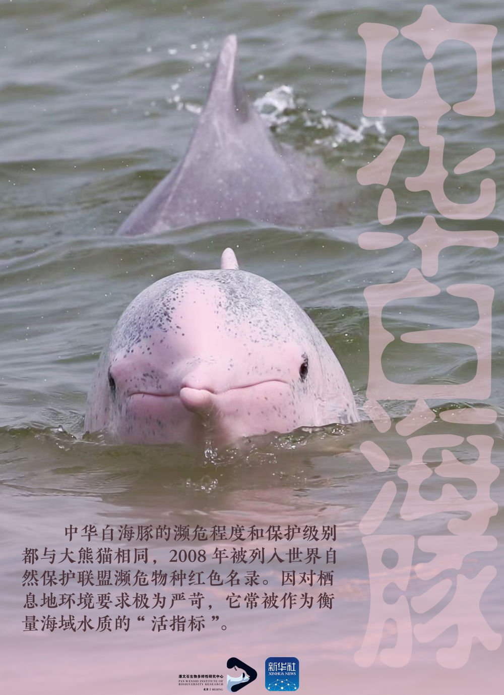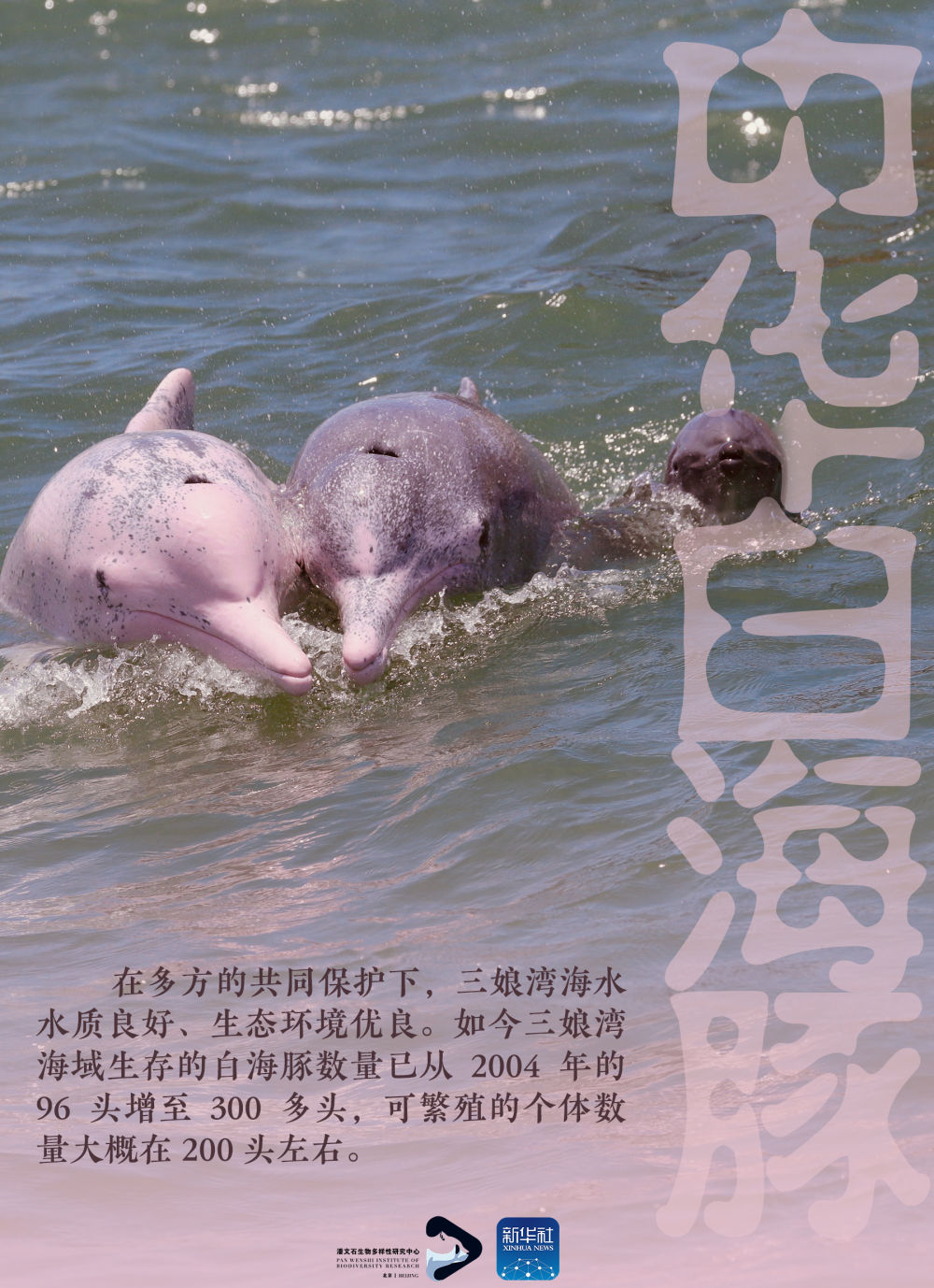 中华白海豚是生活在沿海浅水区的小型海洋哺乳动物,被列入世界自然保护联盟濒危物种红色名录,是国家一级重点保护野生动物,被誉为“海上大熊猫”。三娘湾-大风江海域是中华白海豚在钦州湾的主要栖息地。与其他鲸、海豚相比,中华白海豚不同的地方在于:其体色会随着成长过程而变化,从刚出生的黑灰色逐渐过渡到成年的白色(粉红色)。