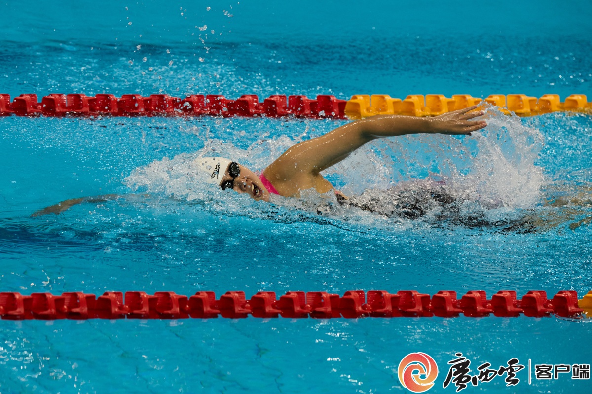 11月12日下午,来自山东的选手都璇正在做最后50米的冲刺,最终获得女子大学乙组个人400米混合泳冠军。
