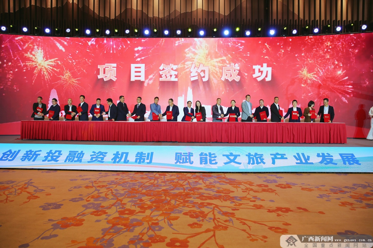 广西新闻网南宁11月19日讯(记者 胡戴炜)11月18日,2023年全国企业家投资广西文化旅游产业发展大会暨冬游广西宣传推介会在南宁举办。本次大会以“创新投融资机制 赋能文旅产业发展”为主题,围绕南宁市打造区域性国际旅游中心城市,聚焦创新发展广西文化旅游产业投融资对接合作机制,坚持项目为王,激发广西文旅产业投融资市场活力,助推广西文化旅游产业高质量发展。现场共成功签约50个项目,总投资额达307.0828亿元。