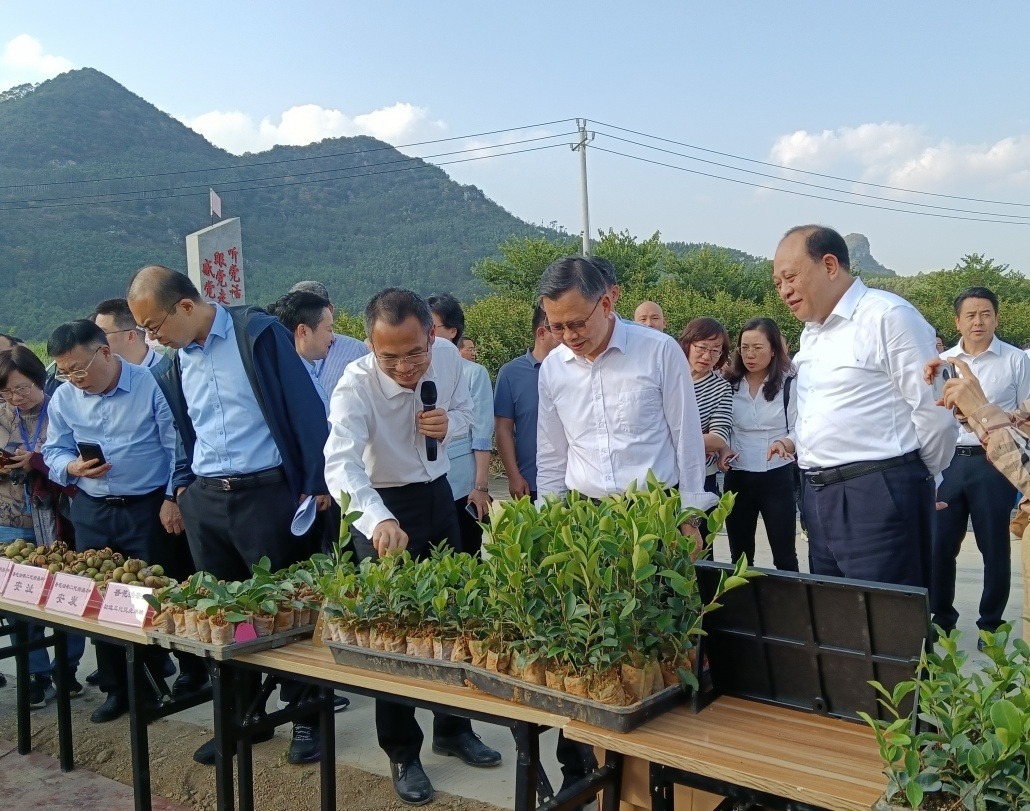 眼下正值油茶果丰收采摘时节,在广西益元香花油茶新品种中试基地,满园飘香、硕果累累的香花油茶让代表们惊叹不已。香花油茶具有生长快、坐果率高、早实、丰产、多抗、果油率高等优良性状,基地种植4年挂果率达到80%以上。目前,该基地种植香花油茶第一代无性系78个品种,包含我区认定的“义禄”“义丹”等13个良种,其中“义禄”“义丹”已经被国家林业和草原局列为油茶主推品种。今年11月,国家林业和草原局、科技司组织了测产,该样地亩产鲜果540公斤、折合茶油54公斤,单个无性系最高产量可达1219公斤、折合茶油121.9公斤。预计2024年进入盛果期,亩产鲜果可达750公斤以上。