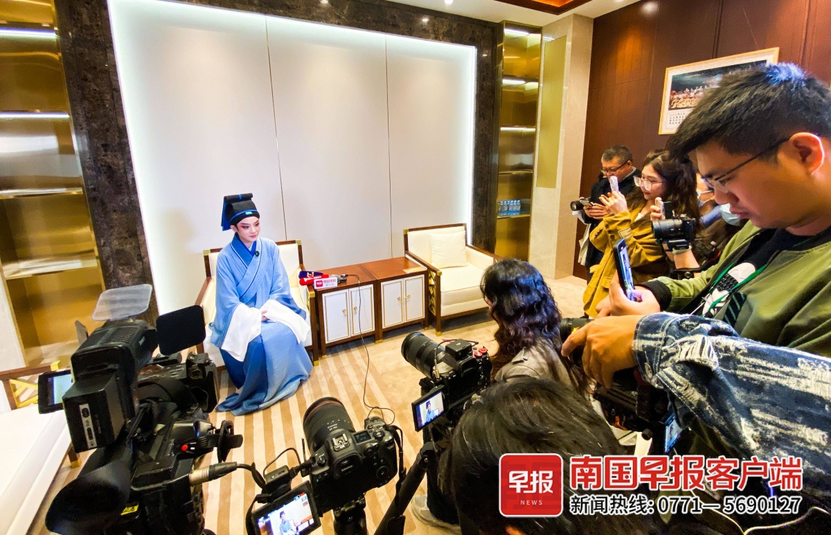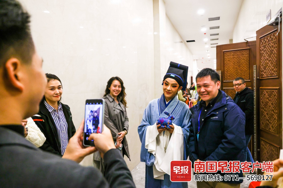 结束演出后,陈丽君接受了记者的采访。舞台上的陈丽君,是英俊潇洒的帅气小生。来到台下的她,表情灵动,举止文雅,说起话来又多了几分温柔。对于自己目前的“出圈”,陈丽君也表示很惊喜。“南宁观众的掌声太热烈了,我很感动。”