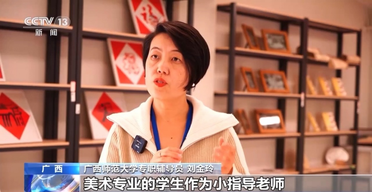 广西师范大学专职辅导员刘金玲:美术专业的学生作为小指导老师,面向全校开设书法体验等活动,让我们非(艺)术科的学生感受到艺术的熏陶。对于(艺)术科学生本身是提高,可以提升他们教育实践的能力。