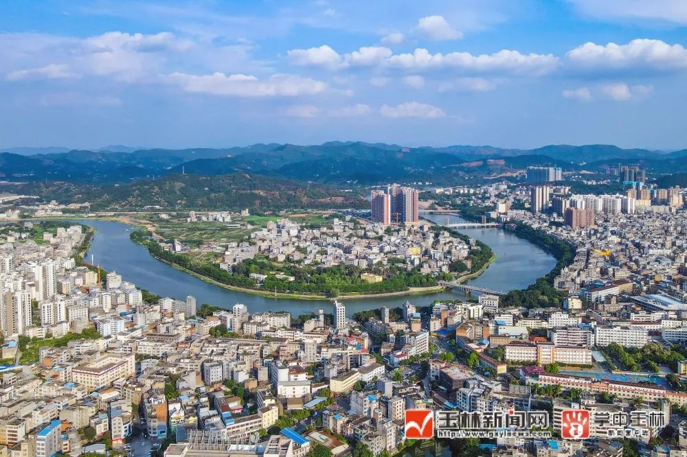 北流城区俯瞰,圭江蜿蜒向北流。刘军 摄 图源:玉林新闻网