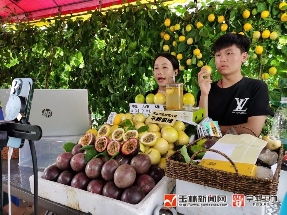 销售人员正在直播带货北流特色农产品百香果。李洪健 摄 图源:玉林新闻网
