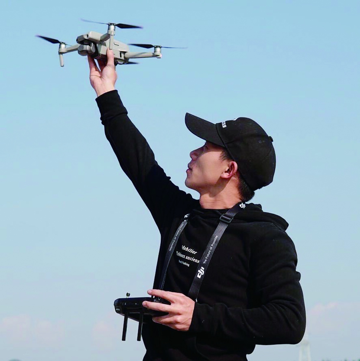 陆涛正在放飞无人机。受访者供图
