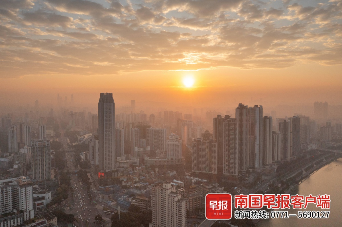 ▲12月29日清晨,南宁市区,朝阳升起。本文图片均为记者 邹财麟 摄