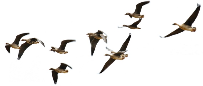 ▲成群结队的白额雁。受访者供图