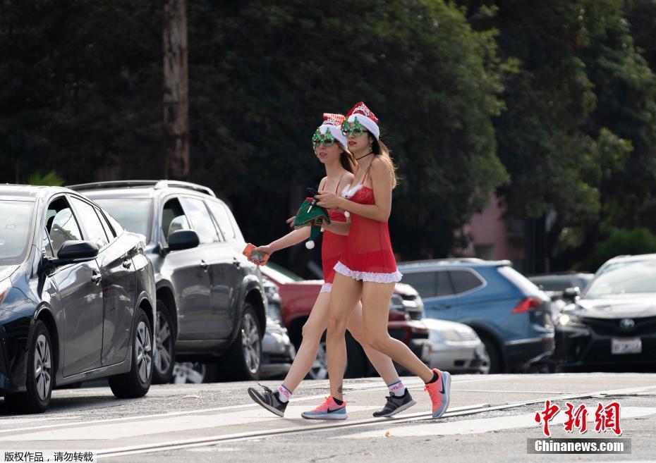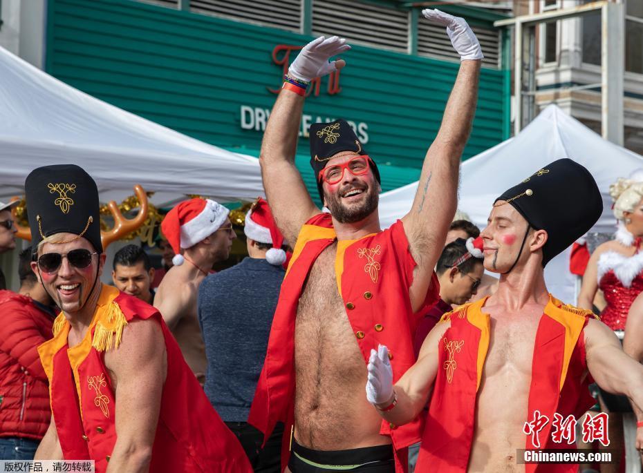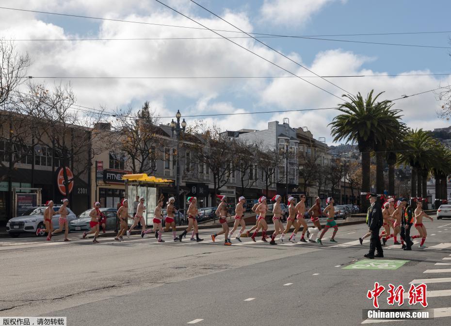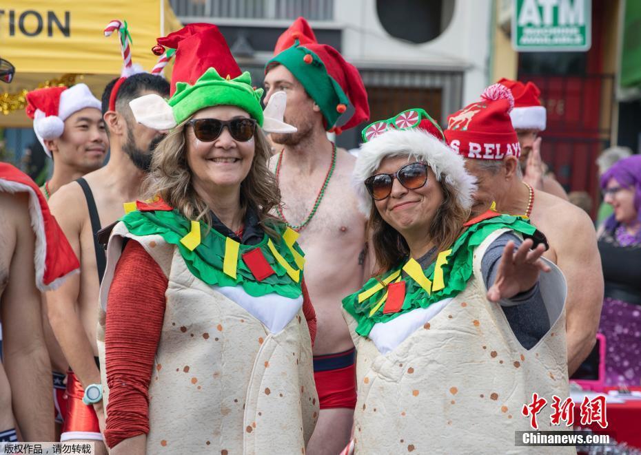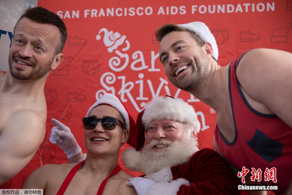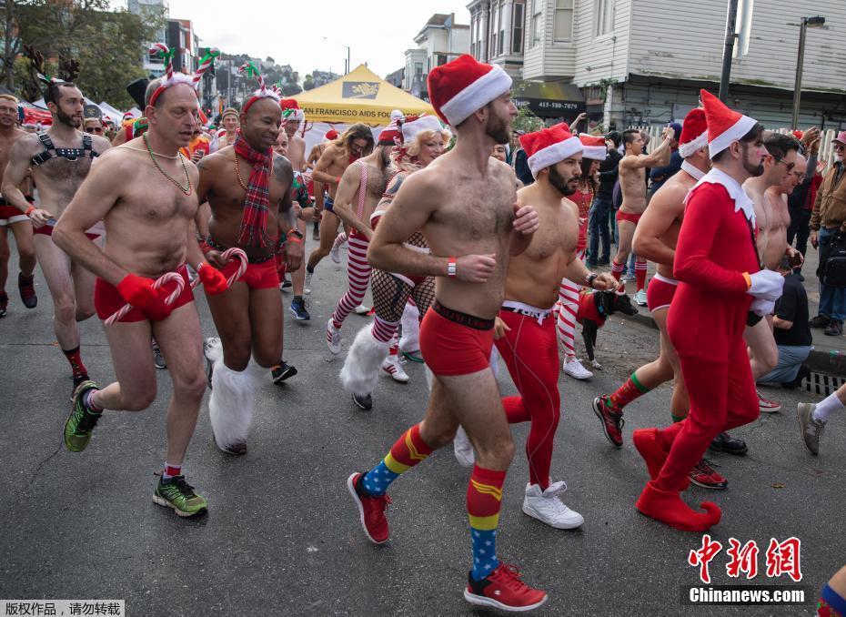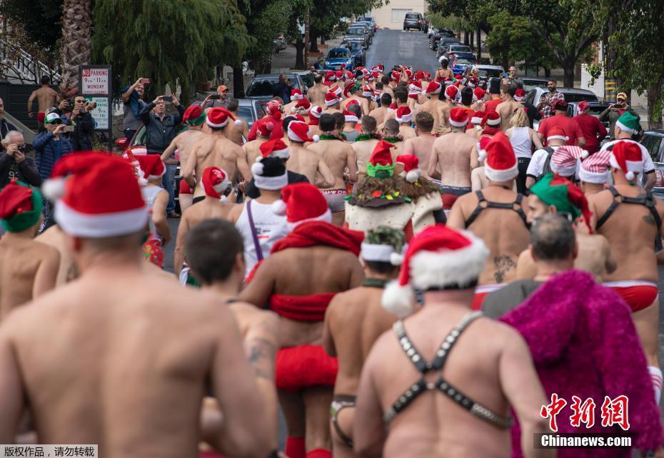 当地时间12月8日,数百人在美国旧金山街头参加“圣诞老人内衣跑”,迎接圣诞节的到来,并为艾滋病患者筹款。