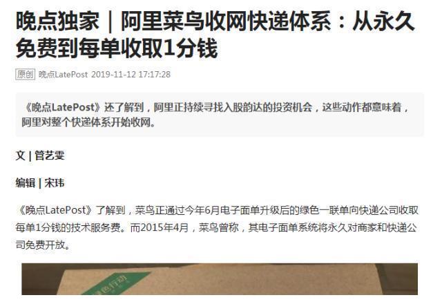 首先,因为在今年上半年菜鸟物流的电子单系统进行了全面的升级,升级之后用户和快递公司操作便捷性进一步提升,加快了快递寄送效率,同时对于用户实时跟踪功能也进行了进一步的完善。随着新的电子单系统的上线,更多的用户会逐步使用这一系统。那就意味着阿里巴巴的服务器等硬件也需要进行升级,相应的维护人员也需要进行配置,而这些都涉及成本。如果这些费用都是由阿里巴巴来承担,显然是不公平的。毕竟这些措施最有利的还是那些快递企业。