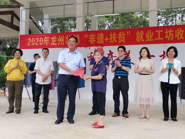 广西文化和旅游厅非遗处处长周建洪在该收益发布会上表示,龙州壮锦“非遗 扶贫”以文化扶贫助力脱贫攻坚、乡村振兴全面小康的方式,使就业工坊跟着乡亲走,乡亲跟着扶贫产业项目走,产业项目跟着市场走,体现了精准扶贫中的“非遗”力量,在“设计 市场”方面形成了“广西经验”而成果显著。为此,龙州壮锦技艺工坊于2018年6月喜获国家文化和旅游部、国务院扶贫办支持的全国首批(十个之一)“非遗 扶贫”就业工坊,“在家织锦、居家创收”模式成为54户村民(其中贫困户18户)增收脱贫致富的“金钥匙”。