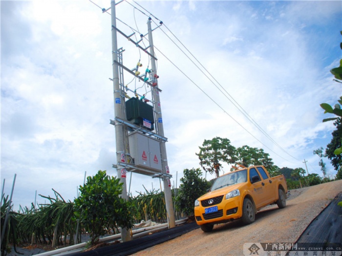 南方电网广西新电力投资集团龙州供电有限公司获悉情况后,按照扶贫事优先办的原则,及时开通绿色通道,组织人员为基地拟定线路走向,出供电方案,统筹安排,协调停电施工。经过多部门联动,上下协调,嘉信火龙果基地新增的6台630千伏安的变压器于7月底正式接火投用。