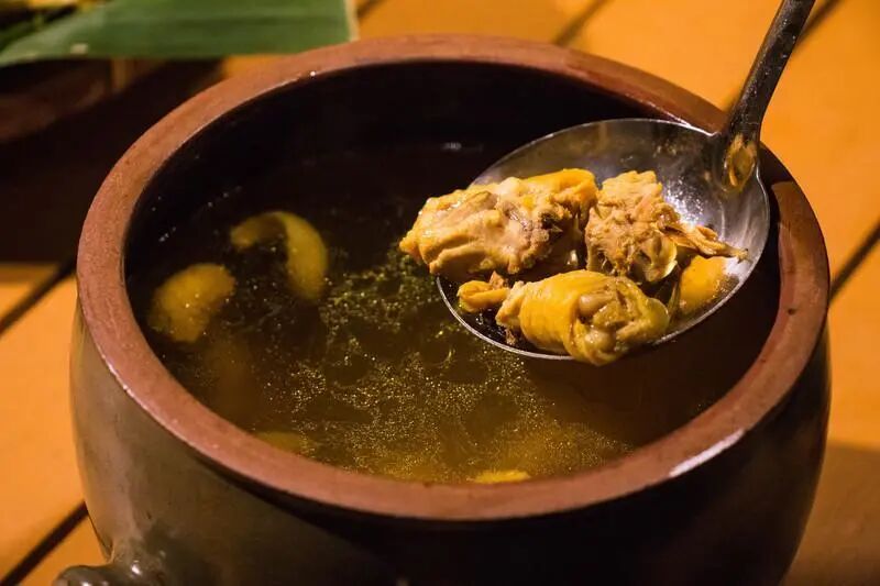 “簸箕宴”是当地最有名的的菜肴,香脆美味的蜂蛹、清甜醇厚的农家土汤,还有难得吃到的金花茶煎蛋,能够无尽地安慰你饥渴的味蕾。