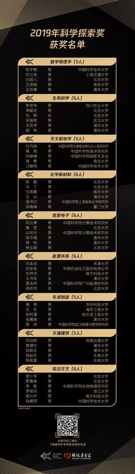 根据腾讯宣布的结果,获奖的50位青年科学家覆盖了数学物理学、生命科学等9大基础学科和前沿核心技术领域。