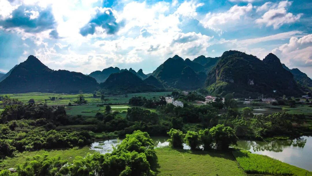 扶伦村位于龙州县下冻镇,这里一步一景,眼眼如画。白云点缀在净澈的蓝天,绿色与整齐的田野四季相守,美丽扶伦,生机无限。