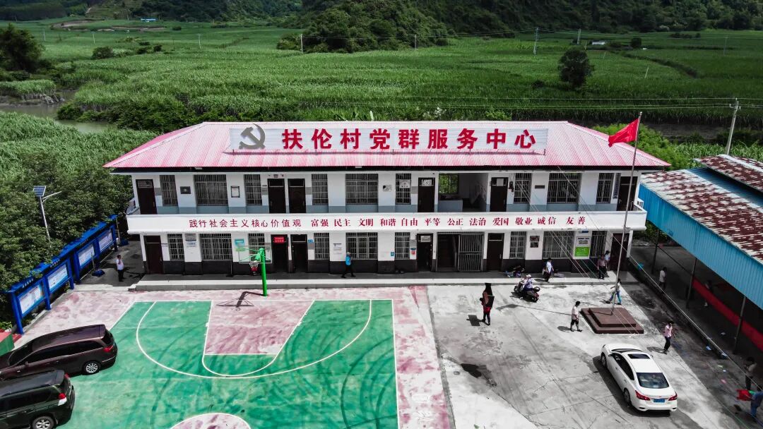 绿野、白墙、红字,“扶伦村党群服务中心”几个大字和飘扬在它一旁的五星红旗在旷野间十分醒目。村委干部们在这里为扶伦计深远,为村民谋幸福。