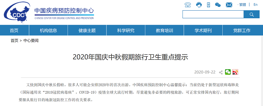 1. 2020年国庆中秋期间我国境内旅行需要重点注意预防新型冠状病毒和诺如病毒感染、食物中毒。