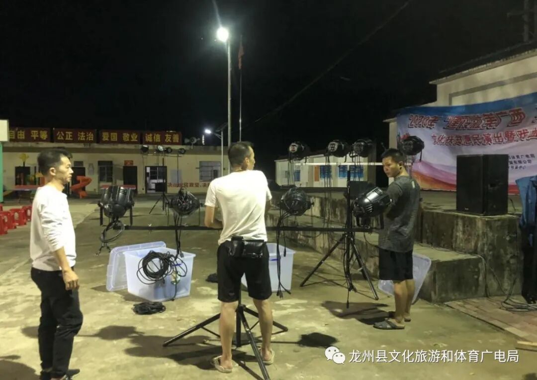 戏曲进乡村上降乡里城村演出前调试灯光设备