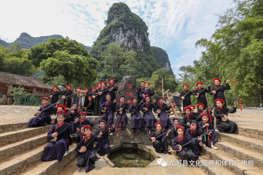 金龙镇的板池屯美女村,这村子被称为“天琴鼻祖”在当地十分出名,板池屯环境优美,山清水秀,四周平坦开阔,农作物质优量多,村民一天忙碌与种植劳作,除此之外更擅长的就是织壮锦,弹天琴、唱山歌了。