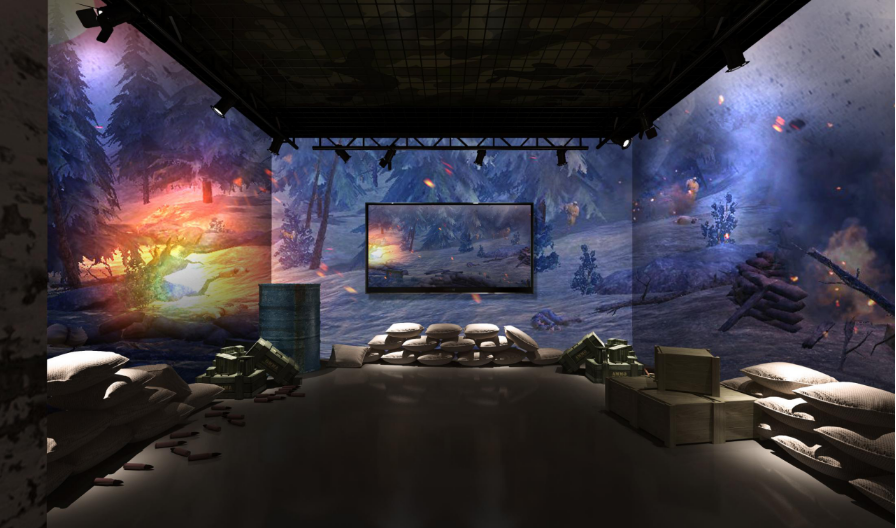 ▲红色战争体验区域通过HTC VIVE VR实现红色战争体验;模拟历史环境再现战争场景,体验者化身革命先烈,感受革命豪情。
