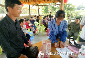 广西崇左市龙州县下冻镇峡岗村那宋屯农家乐分红现场
