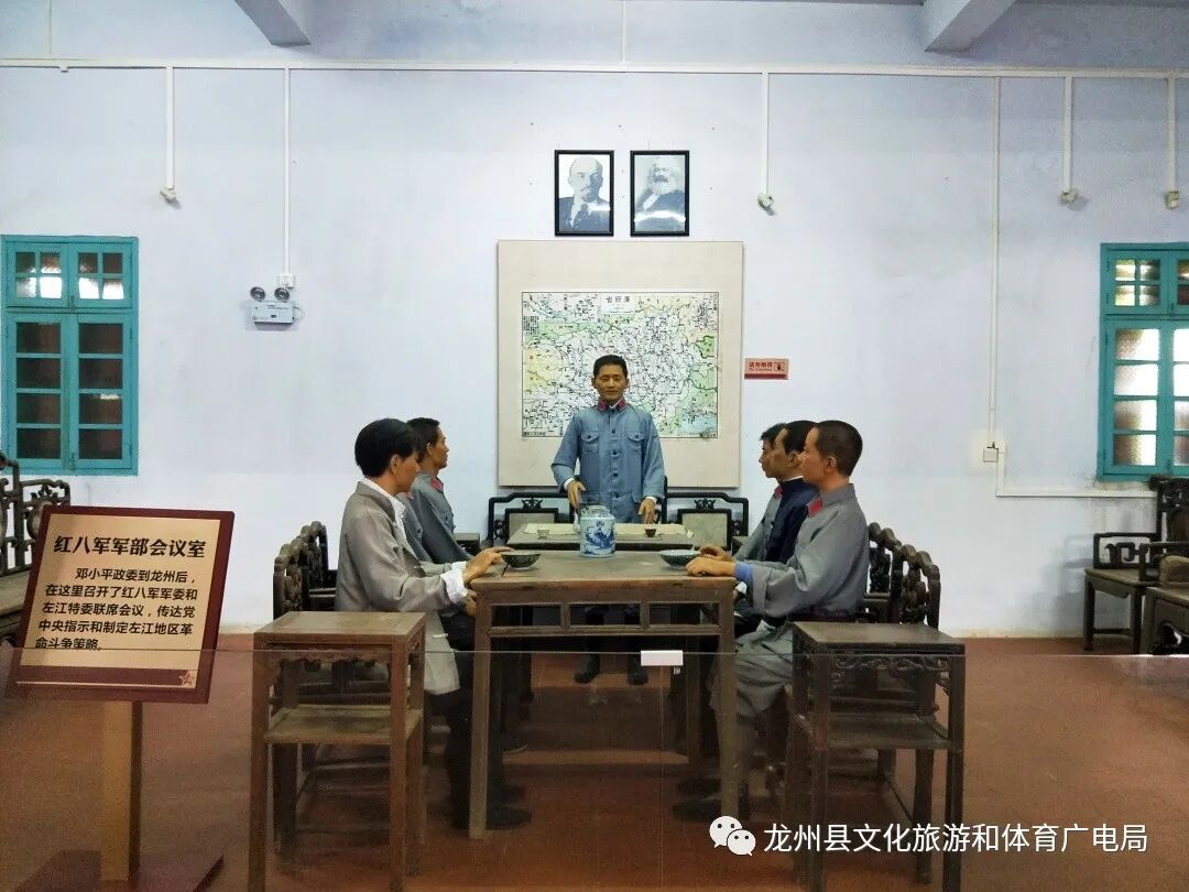 中国红军第八军军部旧址于龙州县城新街19号,原是龙州起义前后党的领导机关和红八军军部所在地。红八军军部旧址陈展厅主要是《邓小平与龙州》陈列展,军部旧址楼房里的摆设仍保留着当年龙州起义时期的样貌,楼房里所有家具是红八军军部工作人员当年所使用的,是旧址内珍贵的革命历史文物。