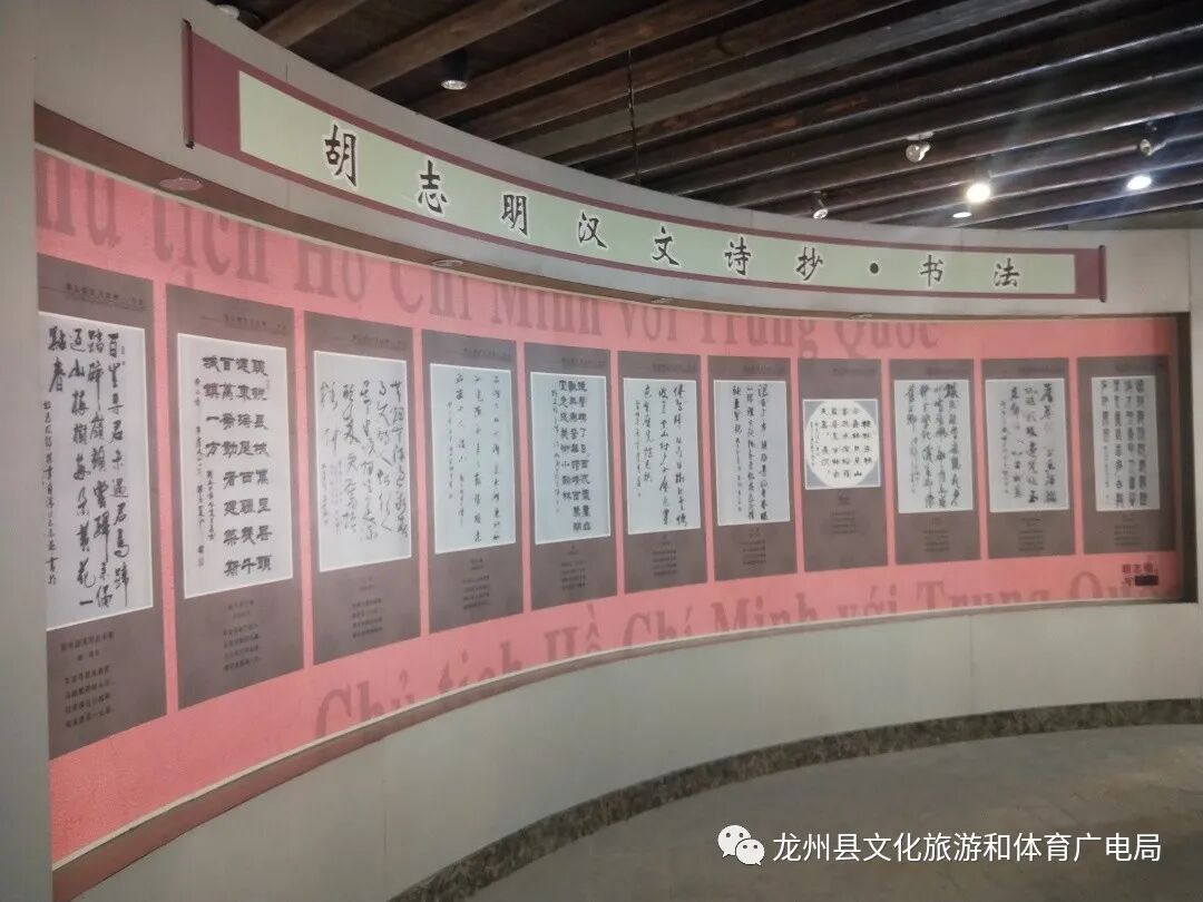 胡志明展馆原是越南共产党驻龙州秘密机关旧址。胡志明展馆分上下两层,分别是“胡志明主席与中国”和“龙州与越南革命”两部分,陈列图片、图表400多张,文物60多件。丰富翔实地展现了胡志明主席及越南革命者在艰苦的革命战争岁月里与中国人民结下的深厚友谊和并肩战斗的历史篇章。