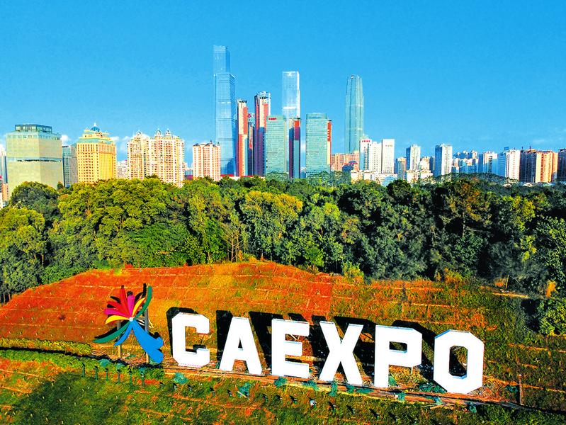 ▲南宁国际会展中心边坡“中国-东盟博览会”新LOGO。