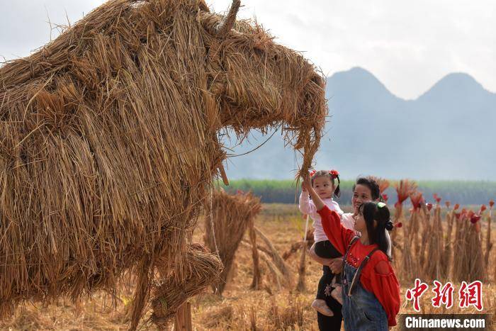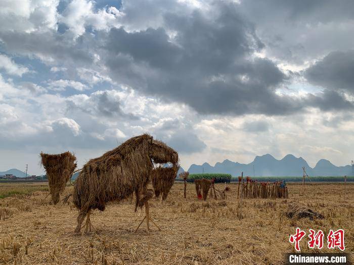稻谷秸秆制成的“牛”雕塑。