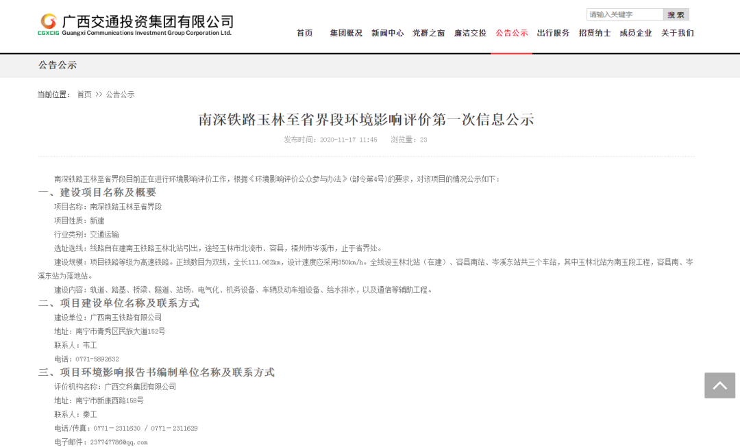 玉林至省界段也已进行环评公示;