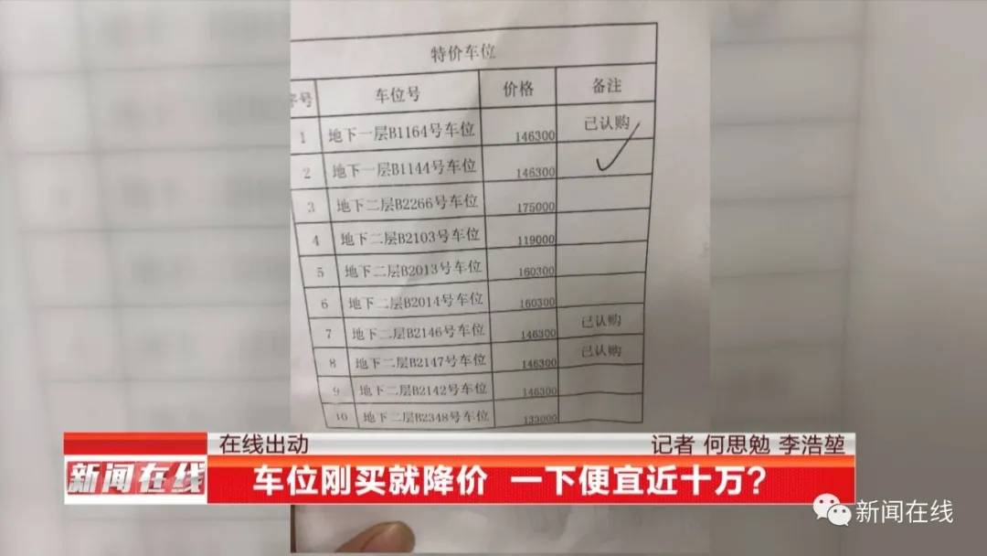 业主们表示,这明显超出了正常范围的降价让他们无法接受,他们希望退掉已高价购买或高价租赁的车位,或者得到差价补偿。随后,记者跟随业主一行来到小区的营销中心。销售顾问解释,他们只是在做特价活动。10个比较边角的车位特价卖,其他车位按正常折扣,在原价上减2万。