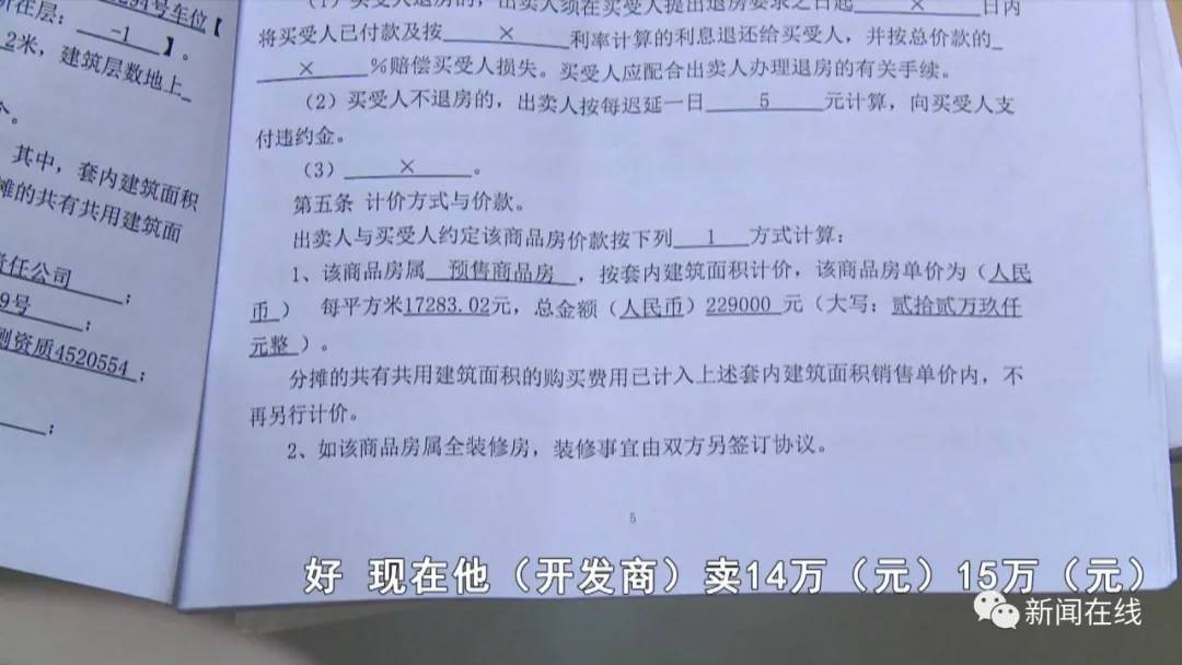 张先生说,开发商曾称,早买价格最便宜,以后买的话会涨价;不买车位就不允许进地下室,20年起租,然后一次性付完20年的租金,总共20多万元。