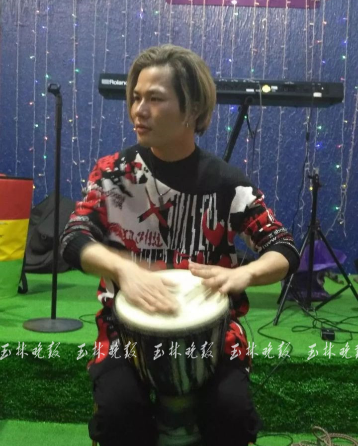 不过,梁青林被玉林的音乐爱好者所熟知,是在2018年之后。那年,他参与的“玉林子扬合唱团”应邀参加CCTV-3《综艺盛典》演出。登台时,他扎着一条小辫子,穿一条形纹的长袍,“那次,我们合唱团演唱的是一首改编的《平凡之路》”。梁青林在那次演出中,同时担任鼓手和和声两个角色,中间一段他个人独唱,让现场的主持人张蕾竖起了大拇指,称他与歌手李健风格极为相似,并以“小李健”称之。自此,“玉林小李健”称号被音乐爱好者加身。