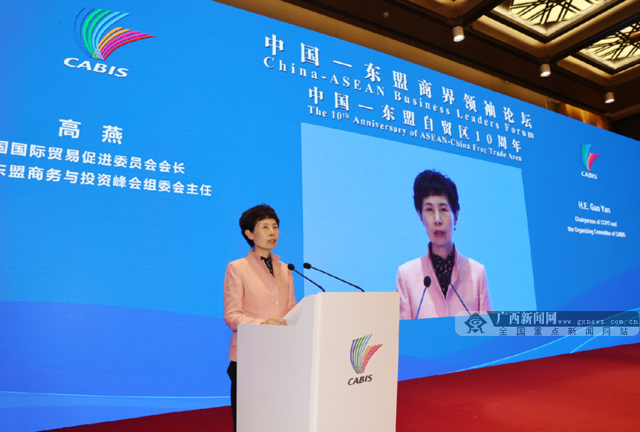 中国国际贸易促进会会长、中国-东盟商务与投资峰会组委会主任高燕在开幕式上致辞。记者 黄克 摄